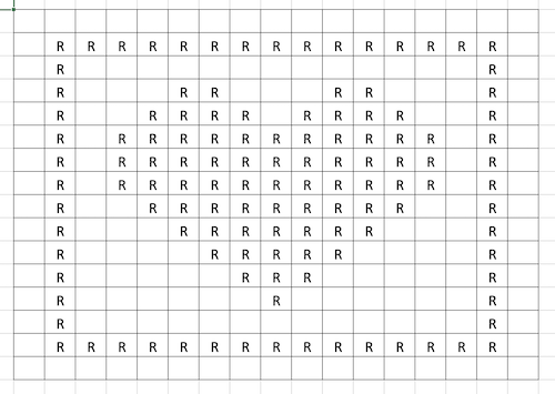 Her har jeg bruge en masse 2 x 2 cm pap ( stoffet klippet 4 x 4 cm) og syet sammen til et hjerte efter dette diagram.