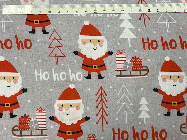 Ho ho ho julemænd på bred bomuldsstof - Grå bund
