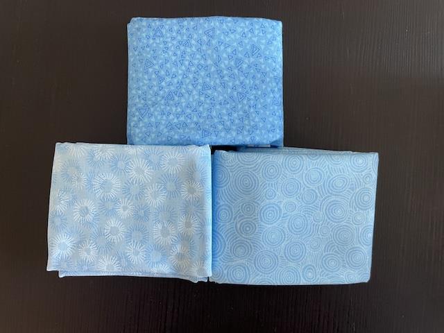 Køb vores Hopscotch patchworkstof - 3 stk/FQ i smukke lyse blå og lav fantastiske patchworkprojekter.