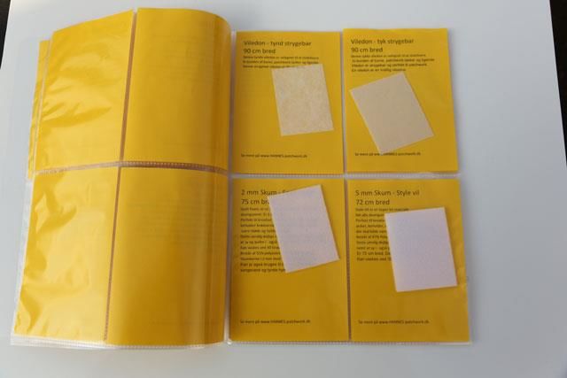 Mappen indeholder små prøver af varen så du nemt kan mærke og fornemme de forskellige tykkelser, mm.