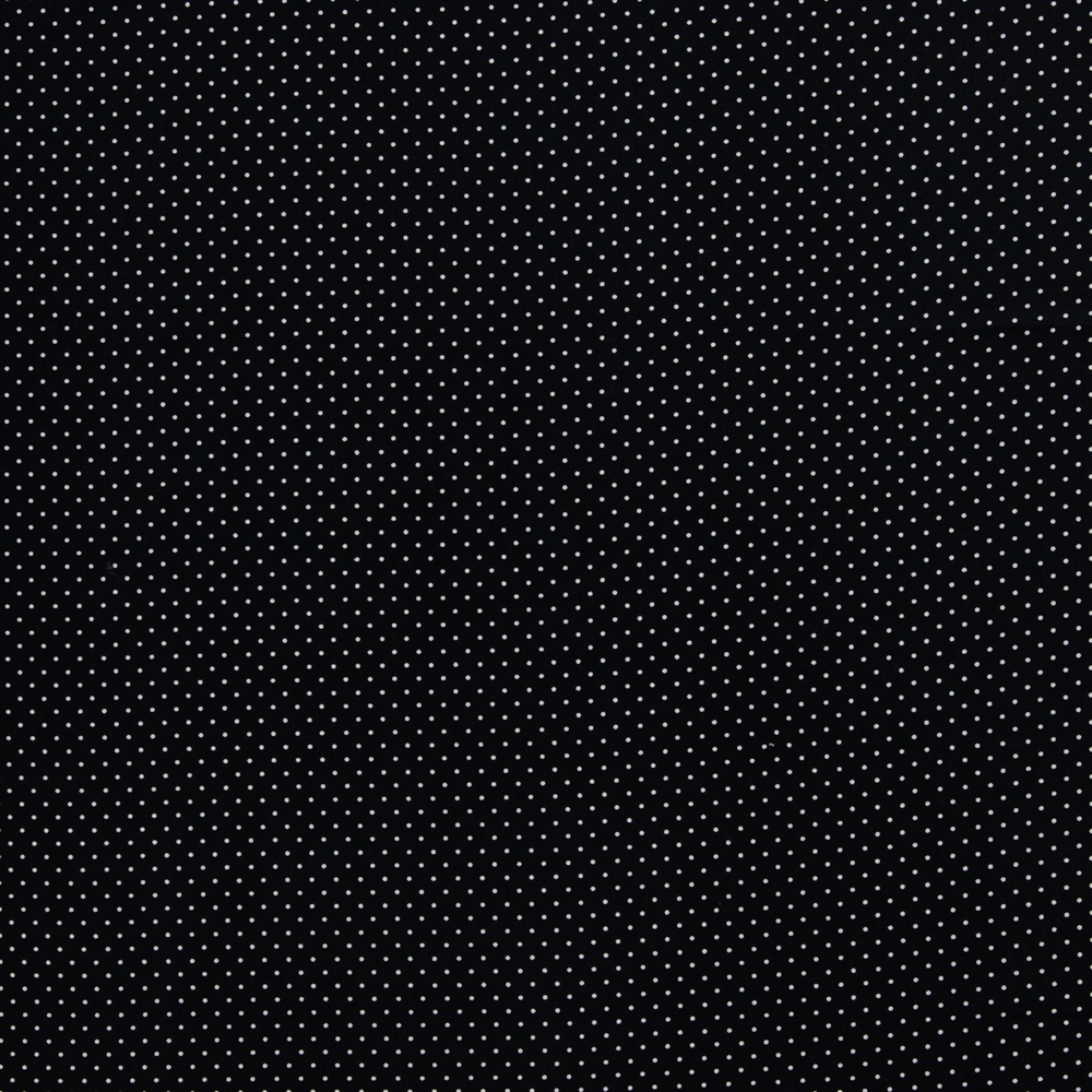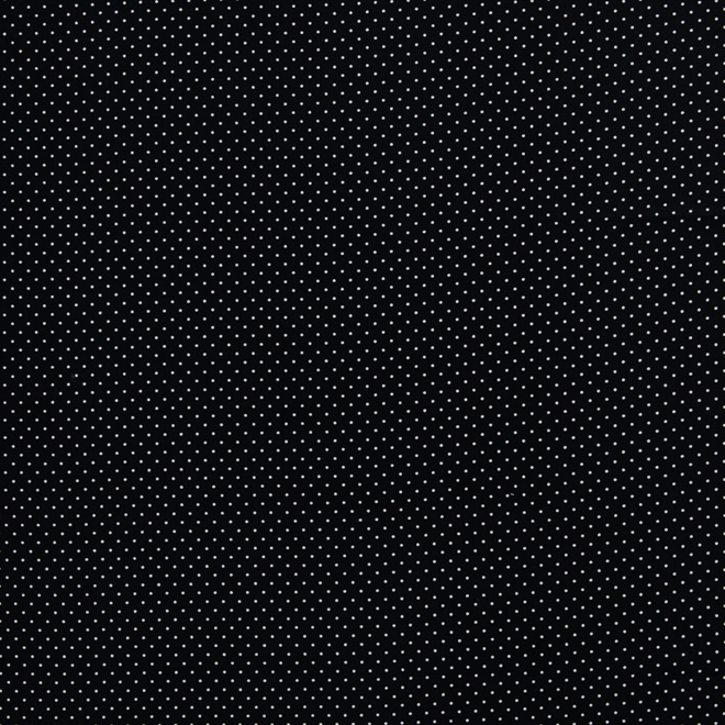 Dette meget flotte bomuldsstof har flot sort bundfarve med masser af hvide prikker i rækker.