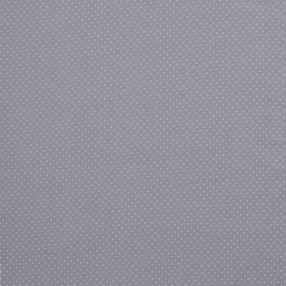 Dette meget flotte bomuldsstof har flot grå bundfarve med masser af hvide prikker i rækker.