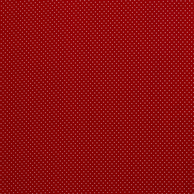 Dette meget flotte bomuldsstof har flot rød bundfarve med masser af hvide prikker i rækker.