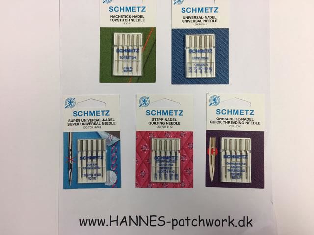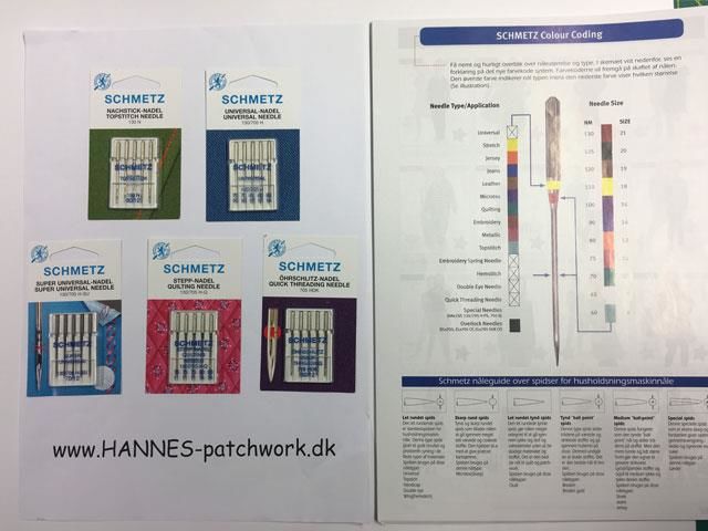 På alle symaskine nåle fra Schmetz har to farver, en for hvilken nål det er og en hvilken tykkelse nålen har.