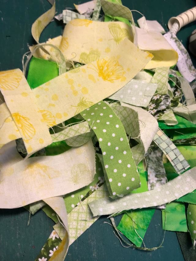 - Syr firkanter i forskellige str eller restetæpper i strimler,