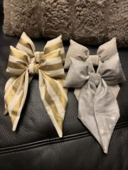 Her er mit bidrag til en ting jeg har syet 20 stk. af, mine piger ønsket sig sløjfer til håret og sløjfer til pynt, så der er blevet syet 20 sløjfer udad lidt fra min reste bunke .