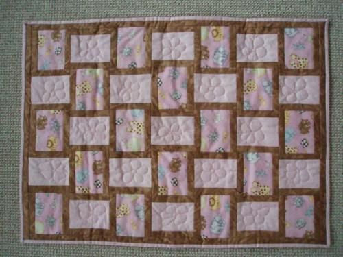 Mønster til Josefine Babytæppe lyserød som måler 65 x 95 cm. Mønster er beregnet til at det er maskinesyet.