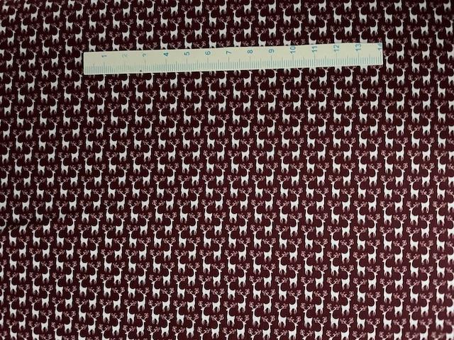 Er et flot mørkerød bred bomuldsstof med flotte lyse mini rensdyr
