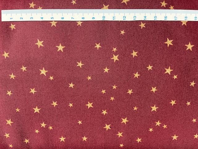 Er et flot mørkerød bred bomuldsstof med flotte "guld" stjerner i flere størrelser