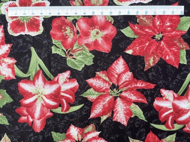 og har masser af super flotte røde julestjerner og blade på sort bund