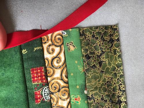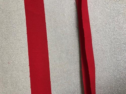 Her har jeg brugte strimler i rødt stof og skåret dem på 2.5 cm brede.