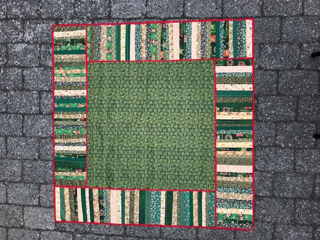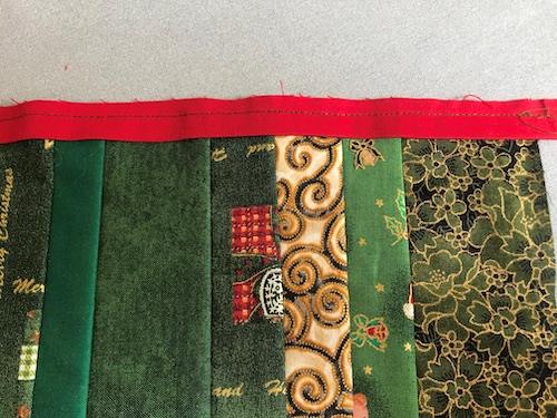 Forside » Gratis DIY og Inspiration » Sy med stofrester - mange muligheder for restetæpper mm » Juletræstæppe i rester i strimmelteknik og med tittekanter Juletræstæppe i rester