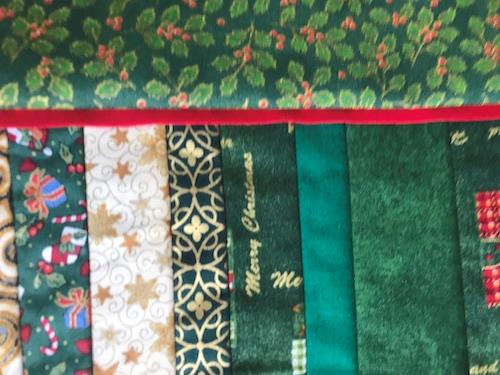 Jeg har bruge alle de grønne og gyldne julestoffer, men det kunne jo også være alle de røde,
