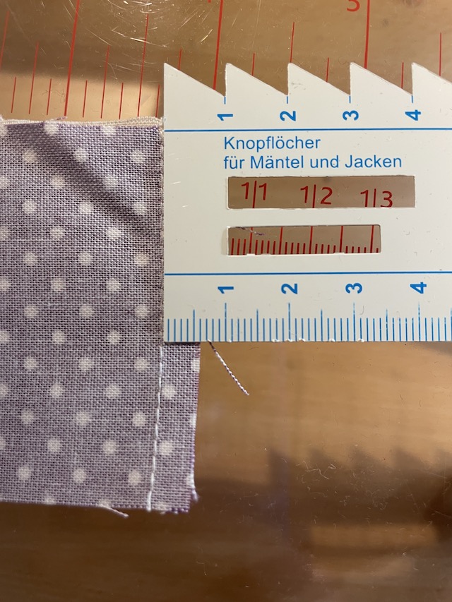 Tag denne prøve ud af din symaskine og tjek om det er 0,75 cm