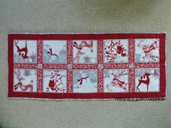 Her i dette Pedari patchworkmønster følger alle papskabeloner med, lige klar til at klippe ud og komme igang med at sy denne Karin Løber som måler 44 x 108 cm.