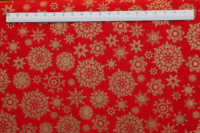 Flot klar rød jule patchwork stof med store og små guld iskrystaller
