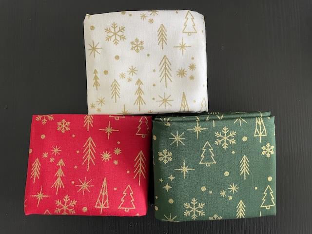 Klassiske jule patchworkstof - 3 stk/FQ med guldjuletræer er perfekt til dit næste jule projekt.
