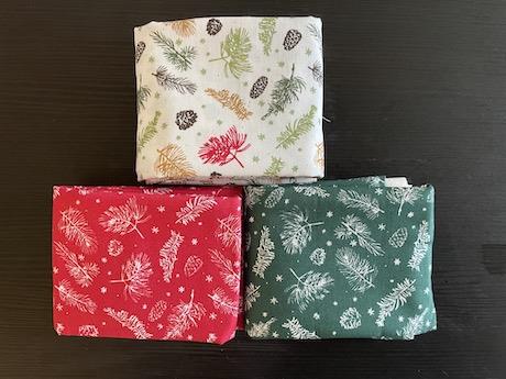 Kogler og grene på brede bomuldsstof - 3 stk/FQ