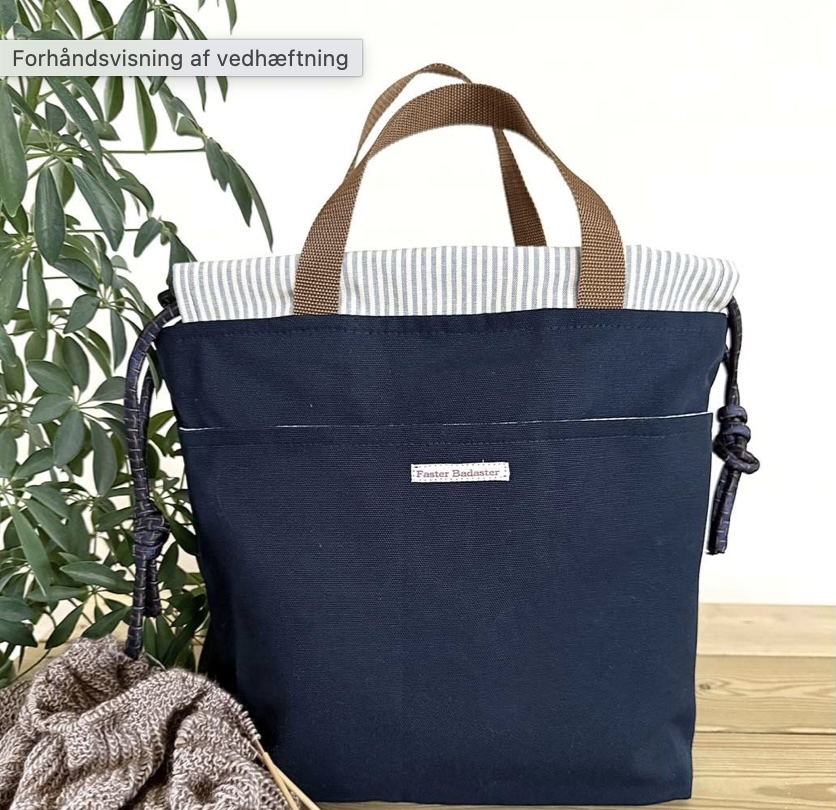 Gjord 80 cm 2,5 cm bred – OBS hvis du vil bære tasken over skulderen eller armen, så skal du bruge mere gjord. Fx mellem 60 og 70 cm pr. hank.