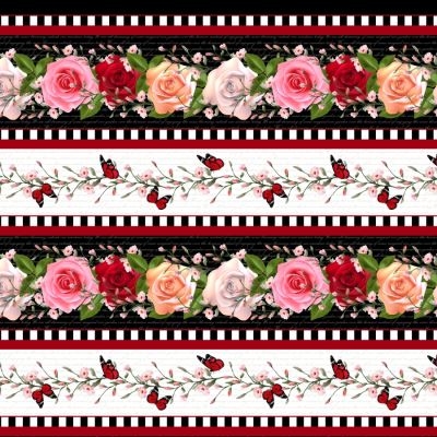 Dette er et iøjnefaldende patchworkstof med et tæt og detaljeret rosenprint i smukke nuancer af rød, rosa, creme og fersken. Stoffet er perfekt til dig, der elsker blomsterstoffer til patchwork, quilting og kreative syprojekter, hvor motivet gerne må fylde og skabe blikfang. Det store rosendesign giver et levende og eksklusivt udtryk og egner sig både til klassiske og moderne patchworkprojekter.