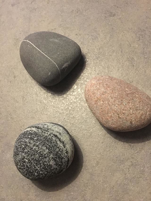 Du finder nogle flotte runde og gerne lidt flade sten på en god strand og sikker dig de passer til de flakoner som passer dertil.
