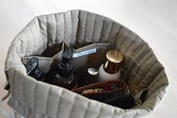 LemonadeToiletTasken er quiltet med mellemfoer og foer, så den opnår en vis stivhed og sagtens kan stå selv.