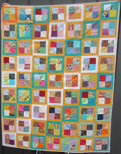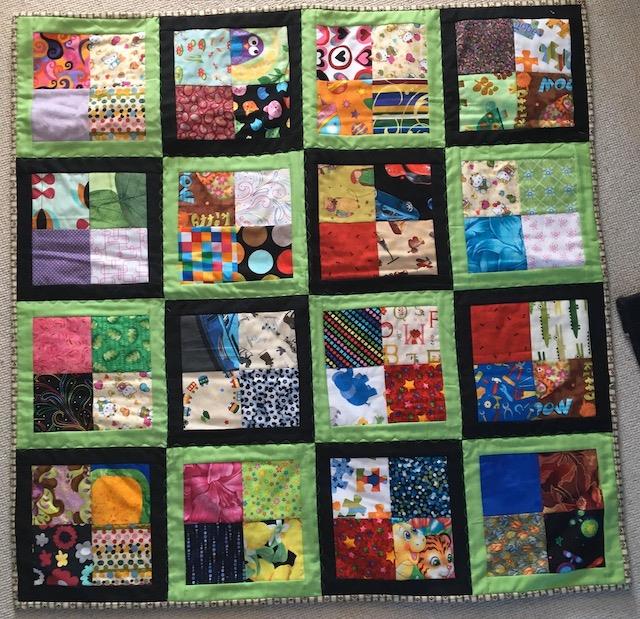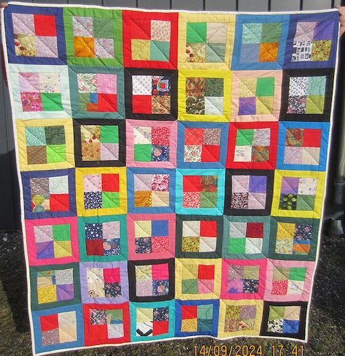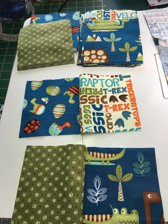 Lenes patchwork tæppe af firkanter. Her kommer en gratis "trin for trin" vejledning til dette meget flotte Færdig mål ca 90 x 90 cm, som er 16 blokke med lukkekanter. Dette dejligt tæppe er perfekt til at sy med sine stof rester, eller her med 4 ens stoffer i hver blok. Det giver jo et andet udtryk. Og vil du have det større - er det jo bare at fortsætte...... Start med at skære dine firkanter på hver 10 x 10 cm. 4 forskellige stoffer i alt 16 stk af hver - ja 4 fat quarter er nok. Sømrum i hele tæppet er 0,75 cm. Sy blokken af de 4 firkanter![]() Start med at sy dine firkanter sammen 2 og 2. Det kan laves på samlebånd og har du, som her, bestemt hvilke 4 stoffer der skal være i hvert felt. ![]() De kan med fordel syes sammen efter hinanden 2 og 2, så de ikke klippes fra hinanden. Pres nu sømrummet til hver sin side på disse to firkanter – de 2 mod venstre og de andre 2 mod højre. Så når du sætter dem sammen, gå de i ”hak” og får dem derved til at passe 100% sammen. ![]() Kanter om hver blok.På hver af de 4 firkanter ( nu en firkant) skal du nu syr ”kanter” på.På ½ delen af blokken de ene farve – og den anden ½ del den anden farve. 16 strimler på hver 4 x 18,5 cm og 16 strimler på 4 x 23,5 cm = 4 strimler ( 2 + 2) til hver blok. Husk at starte forskelligt på blokken med de 2 farver, hvis du har 4 ens stoffer som her Den ene farve ”nord/syd” først ( den blå) og den anden halvdel øst/vest først ( orange). ![]() Her kan du se de 2 forskellige blokke med hver sin farve kant om. ![]() ![]() Pres kanter med sømmen ud under kanterBlokkene er nu færdige og klar til sammensyning.Vigtig at vende dem “modsat hinanden” så der ikke kommer 2 sømme over hinanden. Sy dem først sammen 2 og 2, og derefter igen 2 og 2 firkanter sammen, til du har alle 16 blokke syet sammen. Samle dit patchwork tæppeNu samlere du forsiden, mellemfoer og bagside stoffer. Du kan enten lime eller ri det hele sammen. Lene har quiltet tæppet med en pynte sting diagonalt på tæppe. ![]() Slut med en lukkekant syet på tilsidst. ![]() JuletræstæppeJa du kan jo også sy dette mønster i dine jule patchwork stoffer - som her et meget flot juletræstæppeFoto taget ved Ans Søbred Syet på helt samme måde omkring et midterstykke. Dette tæppe er også syet på symaskine - klik her og se mere VariationDu kan også sætte 2 farver kanter på hver blok, så du har farve 1 på de korte led og en anden farve på de lange.Her er der også brugt en masse stofrester - men stadigvæk samme mål, det giver jo bare et helt andet udtryk. ![]() Og her med samme farve "kanter" om hver blok. ![]() Rigtig god fornøjelse med at sy disse patchwork tæpper. Du kunne jo også vælge alle dine blå rester og komme 2 frække farver kanter om. Eller blande dem på en anden måde - det er jo helt på til dig. Stort tak til Lene. Tak til Lene for hun ville dele dette flotte mønster med så mange muligheder. Et er helt sikkert - jeg skal prøve dette engang. ![]() ![]() ![]() |