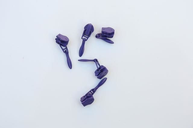 Elegant dråbeformet lilla skyder – passer til 4 mm lynlås i metermål