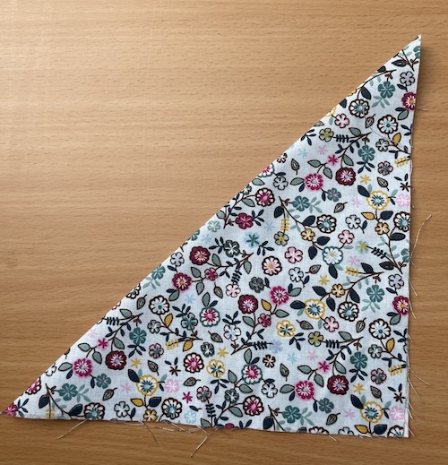 Start med at klippe en firkant og læg den diagonalt med vrangsiden mod vrangsiden.