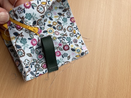 Nu syr du den så fast, på forsiden af vrangsiden, og klipper overskydende stof/lynlås væk.
