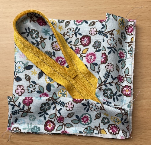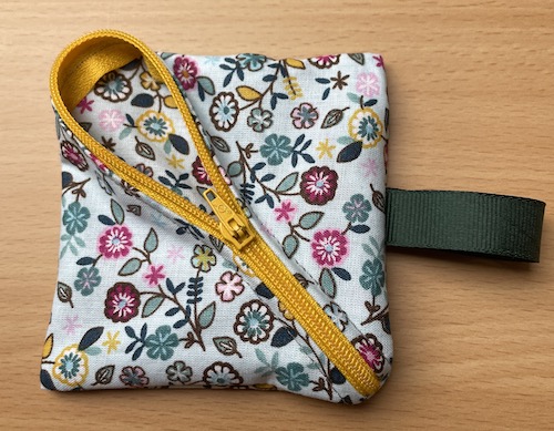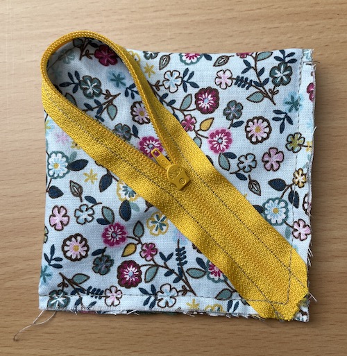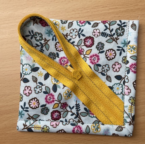 Forside » Gratis DIY og Inspiration » Sy med stofrester - mange muligheder for restetæpper mm » Lille firkantet pung med lynlås. Maskinsyet Lille firkantet pung med lynlås.