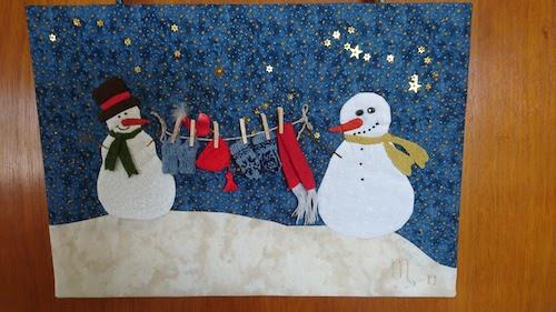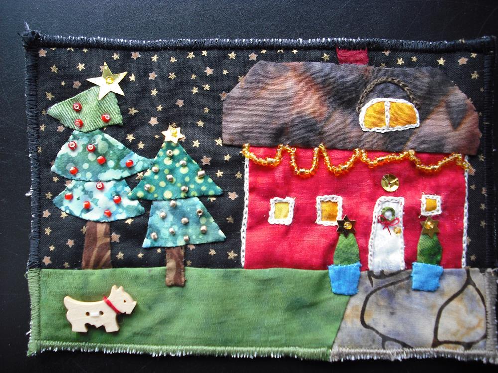 et lille af huset er et postkort jeg syede i 2012 og det andet med snemændende