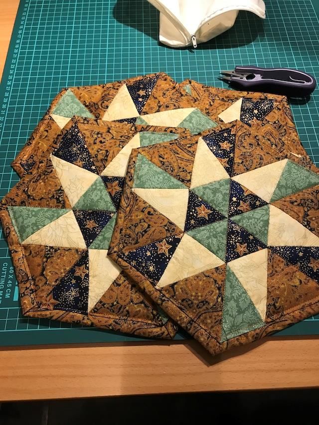 Dette er Lise og Hannes udgaver af HANNES patchwork juleleg 2019 - et gratis mønster som du finder her.