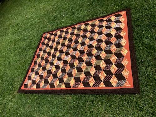 Brun tæppe er rester fra lager. Tæppet er syet på amerikansk og håndquiltet
