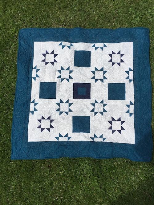 Dette er et tæppe jeg har lavet af resterne af en stjernequilt.  Det er 1,15mX1,15m