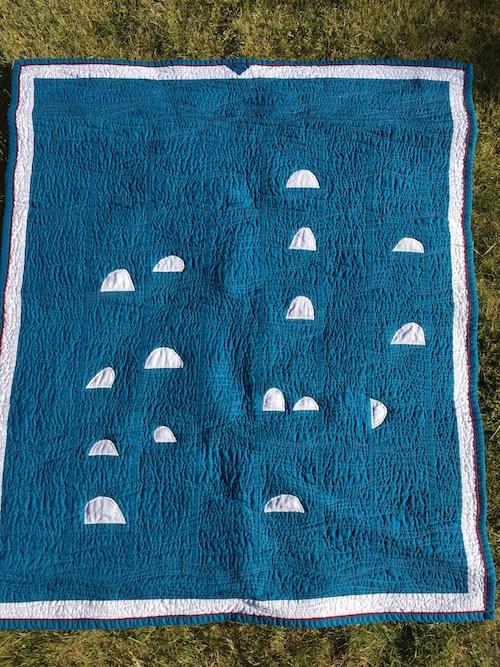 Dette tæppe blev til fordi jeg havde de hvide “bobler” til overs