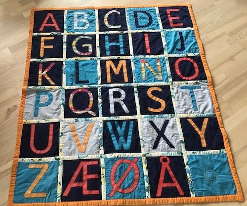 Tæppet kan bruges til at lære børnebørnene at stave.