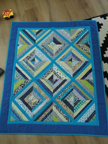 Hej, Jeg vil gerne deltage med dette tæppe syet af rester til mit barnebarn Laurits