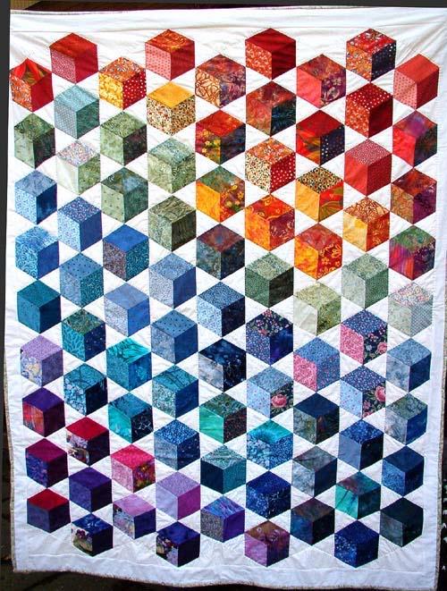 ”Farvekasser” er syet til Dorthe, som er kunstmaler og selv elsker farver, og i farvevalget har jeg i tankerne haft en litografi af Asger Jorn samt nogle af Dorthes egne billeder, som hænger på hendes vægge. Jeg brugte megen tid på at lede efter de rigtige lapper i mine stofrester. Dorthe har alvorlig  leddegigt, og derfor er quilten foeret med fleece, så det er så lunt og let som muligt. Håndsyet "på amerikansk”. Håndquiltet. Mål 130 x 180 cm.