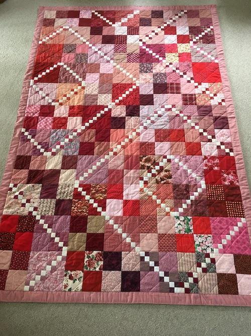 Dette reste tæppe er Dansk Patchwork Forening Jubilæumstæppe er lavet til min søn.