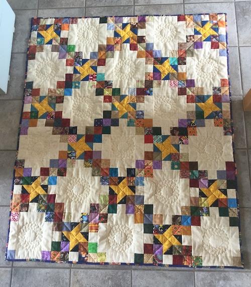 Irich chain og venskabsstjerne sat sammen med rester er blevet til dette puttetæppe.