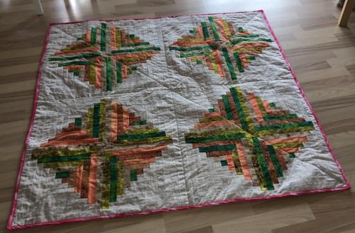 Dette tæppe har jeg syet af reste strimler, tæppet måler 125 x 125 cm