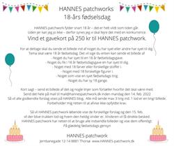 Lod nr 2 i HANNES patchwork 18 år fødselsdags konkurrence