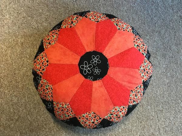 Dette patchwork mønster til Louise runde Pude indeholder papskabeloner lige klar til at klippe ud.