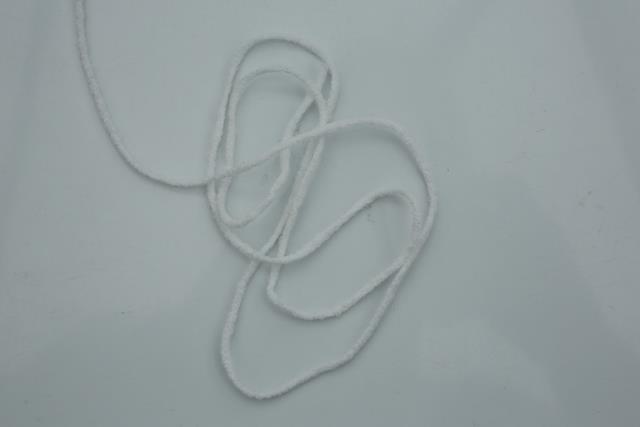 Dette runde hvide elastik består af 80 % polyester og 20% elastan.