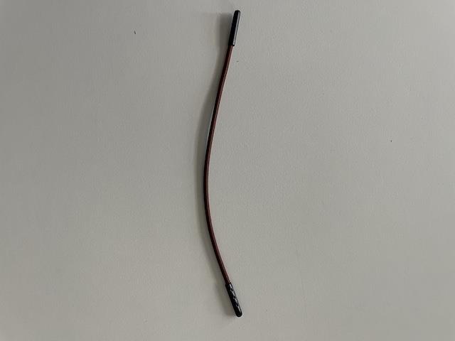 Lynlås vedhæng brun elastik, er 15 cm lang.