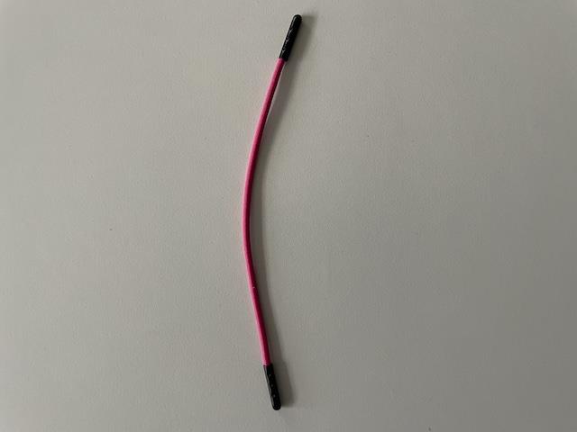 Lynlås vedhæng pink elastik, er 15 cm lang.
