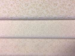 Her finder du flotte lyse - fra hvid til cremfarvet- patchworkstoffer i metermål.