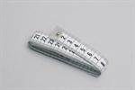 Båndet er præget med præcise måleenheder, såsom centimeter og tommer/inch, der giver mulighed for nøjagtige målinger. Målebåndets fleksible natur gør det nemt at tage målinger af kurvede eller ujævne overflader, hvilket er særligt nyttigt ved tøjtilpasning eller stofmåling.