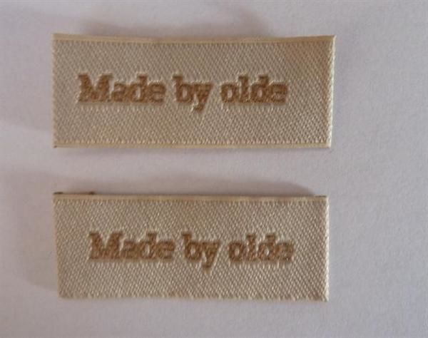 Gør dine patchworkprojekter ekstra personlige med disse fine labels med teksten "Made by olde". En lille, men betydningsfuld detalje, der fortæller modtageren, at dette håndarbejde er skabt med kærlighed af mormor.